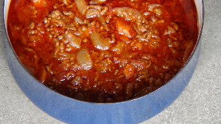 薪ストーブのトップでじっくり玉ねぎを炒め、炉内でスキレットを使い挽肉を炒め玉ねぎにあわせる トマトを加え煮込む オリーブオイル、ニンニク、塩コショウ、ローリエ |