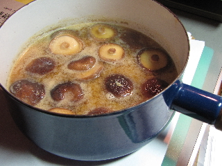朝起きて薪ストーブに着火する 鍋に水を入れイリコを一掴み 本格的に燃え出した頃に沸騰するのでアクを取り、端の方でしばらく休ませる アミで静かにイリコを取る ダシ完成 |