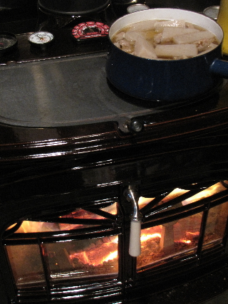 薪ストーブは1日中100度手前の天板温度を保つ事は意外に簡単 暖房しながら調理が出来る、エコキッチン 欠点はおでんのニオイ、和風ダシが家中に充満する事ぐらい