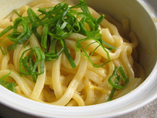 市販の冷凍うどんもあっと言う間に食べごろ、釜玉もOKです 麺も芯から暖まる