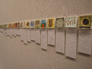 幅75ミリのポストイットカードに彩色 隙間を20ミリ程度、50枚並べて展示 約5m 展示スペースは近代美術館の大きな壁面5m 普段は一般には貸し出しいていないスペース