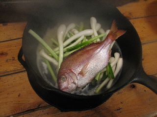 薪ストーブ料理 5 鯛の酒蒸し(30分)