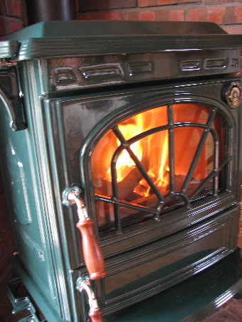 伝統的な鋳物デザインのエリン サイドシェルフ付き グリーンも鮮やか エアー調整レバーが独特の外気取入モデル